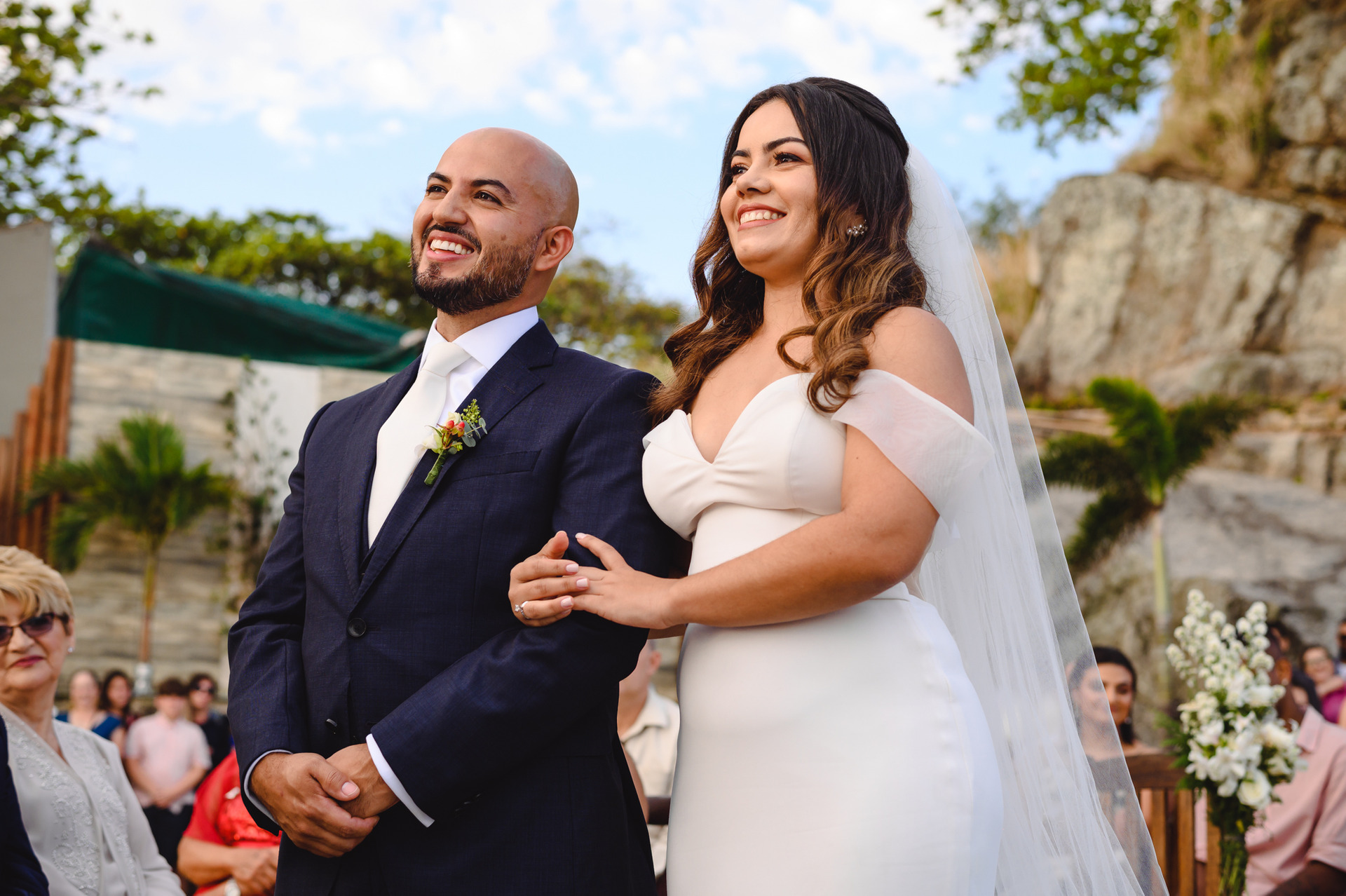 Agradeço a Deus por ter escolhido ótimos profissionais como Flávio e Lethicia. Atenciosos, pontuais, pacientes, que amam o que fazem; isso eu consegui ver no dia do meu casamento enquanto eles tiravam minhas fotos e a confirmação continuou, quando eu recebi minhas fotos, que trabalho lindo, eu simplesmente amei! Muito obrigada!